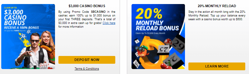 You do not have to be skeptical if you place the minimum deposit. The team of SportsBetting welcomes you with utmost pleasure. In addition to the special bonus of SportsBetting.ag, you will get reload bonus, referral bonus, loyalty bonus, deposit bonus, VIP bonus, and many more bonuses. One of the most appreciated bonuses is free play promotions. Casinos usually offer free play passwords in announcements on their social media channels or in e-mails. Gamers have to create an account and deposit funds to get the bonus. They can enjoy a 100% bonus up to $500 when they sign up.